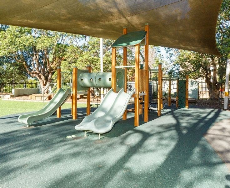 - an inviting playground with play equipment, garden spaces and shady, mature trees